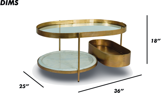 Tiered Semi Circular Coffee Table with Marble Surfaces