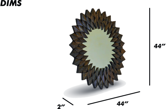 Round Carved Wooden Sunburst Mirror