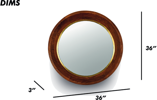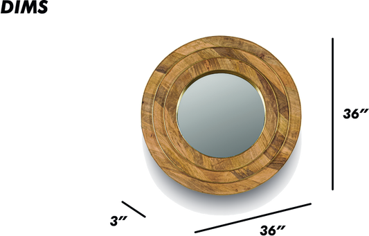 Brown Round Wooden Wall Mirror