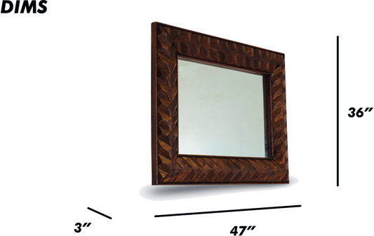 Geometric Carved Wooden Wall Mirror